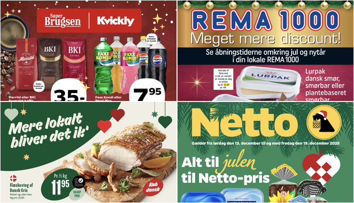 SuperBrugsen tilbyder Merrild eller BKI formalet kaffe i flere varianter til en pris af 35 kr. pr. pose. Tilbuddet gælder fra fredag den 12. december til torsdag den 18. december 2025.