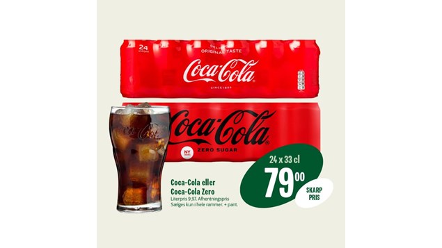 Iskolde Coca-Cola-tilbud hos Min Købmand, Nim – skarp pris på 24 stk. ramme i denne uge!