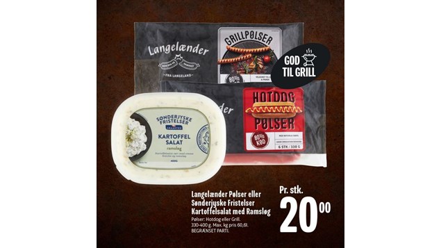 Langelænder pølser til 20 kr i denne uge