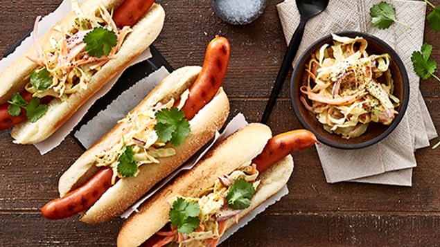 Coleslaw er fantastisk på hotdogs. Snit spidskål tyndt på et mandolinjern, og bland det med groftrevet gulerod og lidt fintsnittet rødløg. Vend det derefter med din favorit chilisauce, en god mayonnaise og lidt limesaft. Slut af med at drysse med frisk koriander.