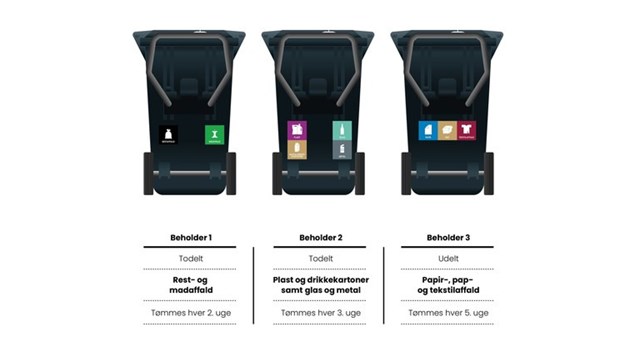 Dette betyder, at borgere i én-families-ejendomme vil have tre affaldsbeholdere i stedet for to fra september. Formålet er at genanvende flere ressourcer og reducere forbrænding.