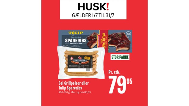 Vi har b.la. fyldt hylderne op med Faxe Kondi og Pepsi Max og grillpølser fra GØL