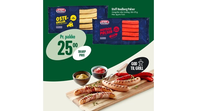 Når solen skinner og grillen er tændt, er der intet som en hotdog på grillen til at sætte gang i sommerstemningen! I denne uge kan du få Steff Houlberg pølser til en skarp pris!